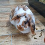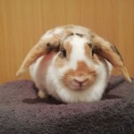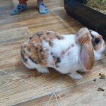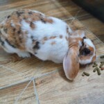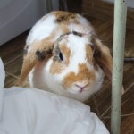 Jednou z těchto králíčků je i Fixka. Má jako jediná ouška dolů, ale jako beránek moc nevypadá, má tvar hlavičky spíš jako sourozenci s ušima nahoru. O to je ale roztomilejší. Uši jí vlajou na všechny strany. Zpočátku se v dočasce bála, to už je ale pryč. Lehkou nadváhu kterou měla již vyběhla, vše rada zkoumá. Když k ní přijdou hodní lidé tak běhá kroužky a brumlá (znak spokojenosti a lásky). Nechá se pohladit a to i v klícce. Dokonce zjistila, že když do lidí trošku strčí, začnou já hladit i když ona chce.
