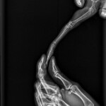 Koncem května k nám do azylu přicestovala velice sympatická handicapovaná králičí holčička Hokejka. Na Hokejku jsme byli upozornění jednou z našich fanynek. Nacházela se ve zverimexu na jihu Čech, kam jí údajně odložil její nezodpovědný majitel. Díky skvělým dobrovolníkům se sehnal téměř okamžitý převoz k nám do azylu. Králička byla velice zanedbaná, znečištěná výkaly a se zplstnatělou srstí. Největší problém však představovala její pravá přední tlapka o které jsme se ze začátku mylně domnívali, že je zlomená. Ve snaze zachránit pacičku jsme se objednali ke specialistovi = ortopedovi MVDr. Skalovi, který nám již poněkolikáté vyšel vstříc a králíčka vzal přednostně. Hokejka je statečná holka a návštěvu veteriny i v šíleném vedru zvládla skvěle. RTG ukázal, že se nejedná o zlomeninu, ale pravděpodobně o vývojovou vadu při které došlo k deformaci kosti vřetení a loketní a následnému přetočení zápěstí.