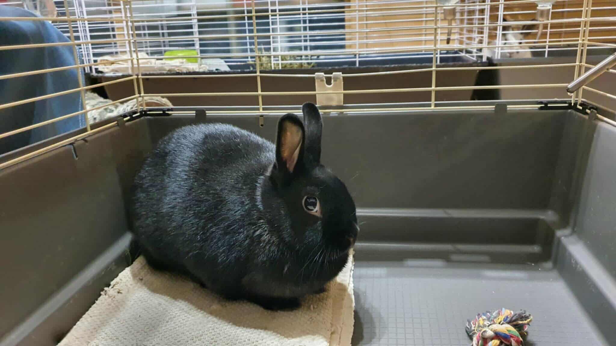 Tahle krásná černá králičí kulička byla nalezena v červenci u Hostivařské přehrady. Majitele se nepodařilo dohledat ani po několika měsících a tak je na čase se poohlédnout po nějakém novém páníčkovi. Holčička je moc hodná a klidná. Potřebovala by trošku zredukovat váhu a tak hledáme někoho, kdo by jí zajistil dostatek volného pobytu mimo klec a dohlidnul na správný jídelníček.