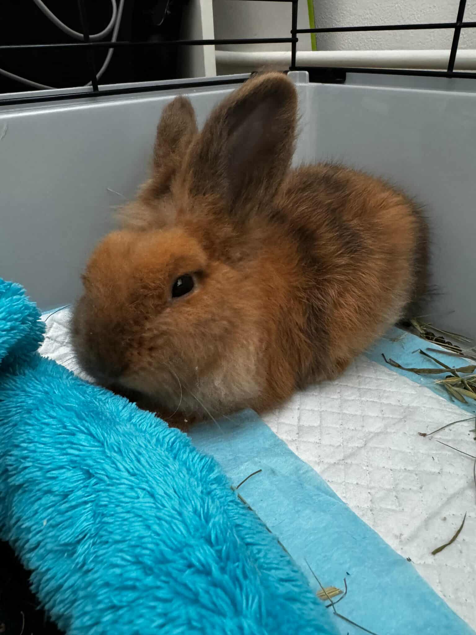 Pookie se k nám dostal v červenci jako maličký nemocný králíček. Byl nalezený s několika dalšími králíky na Praze 4 (Novodvorská). Jeho zdravotní stav byl a je stále velmi vážný. Má jaterní kokcidie a nemocné srdíčko. Bude muset brát celoživotně léky.