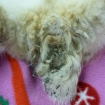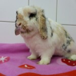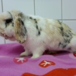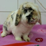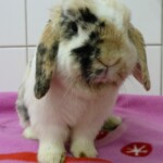 Rainbow je nádherná tříbarevná beranička, která k nám přicestovala společně s králičími holčičkami Sunshine, Stormy a třemi morčáky. Bow žila v nevhodných podmínkách a špíně u důchodce, kterému se celý chov králíků vymkl kontrole. Králičí holčičky Shine a Stormy v azylu porodily. Dá se tedy předpokládat, že i Bow mohla přijet do azylu březí. Proto bude její karanténa delší, aby novým majitelům doma nenadělila nečekanou nadílku. Bow se v azylu hezky aklimatizovala. Trošku problém jí dělá ještě návštěva králičího záchodku, ale loužičky už hezky zvládá dělat výhradně do něj. Jen ty bobečky trousí všude možně. Je to velice milá avšak zatím stále ještě trošku nedůvěřivá králičí holčička. Pro Bow budeme po vyloučení březosti nebo po odstavu mláďat hledat milující domov, kde jí budou patřičně hýčkat a rozmazlovat.