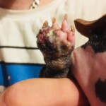 29. 6. 2018 Raspušky zdravotní stav se horší, otok hrudních končetin se výrazně zvětšil a došlo k otevření otlaku a nekrotizaci ran. Nasazujeme antibiotika a léky proti otoku a bolesti. Po dohodě s MVDr Svozilem zatím necháváme mláďata u matky.