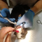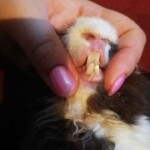 Ve druhé polovině srpna jsme přijali velice zuboženého, maličkého králíčka Venomka, kterého někdo odložil do zverimexu. Králíček byl kachektický, dehydratovaný a celkově ve velmi špatném zdravotním stavu. Po důkladné prohlídce a veterinárním vyšetření jsme zjistili, že tento stav je způsobený především špatným postavením zoubků. Jelikož se však jedná ještě o mláďátko, které je stále v růstu stále existuje naděje, že se mu zoubky srovnají a začnou se obrušovat. Venomek však musí chodit na pravidelné broušení zoubků v inhalační narkóze.